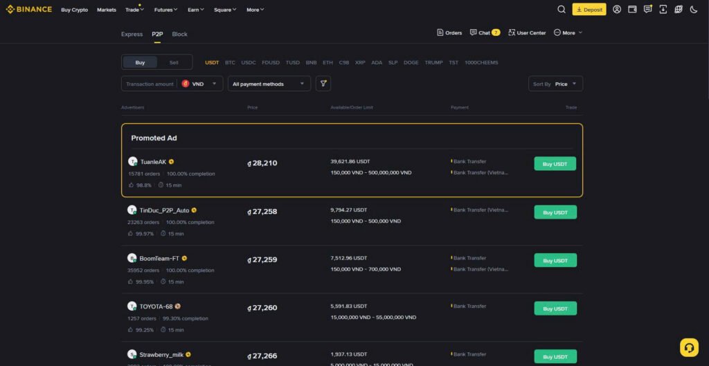 This is a marketplace where you trade directly with other users. Binance acts as the Escrow service (Middleman) to ensure safety.